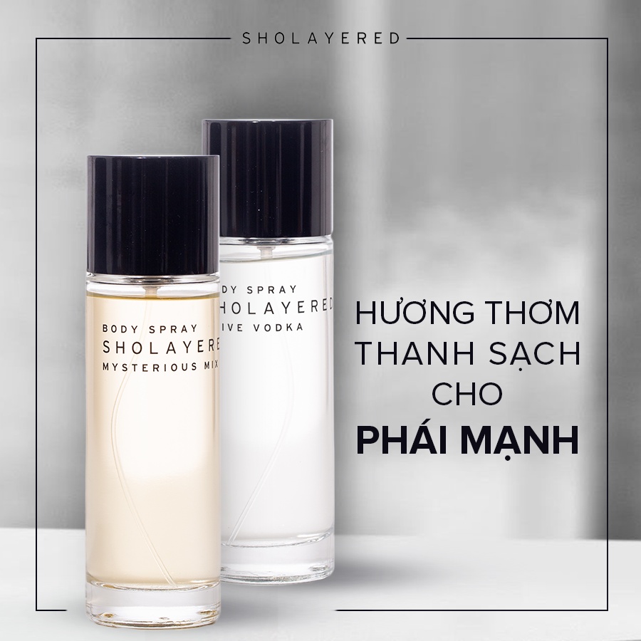 Với 6 mùi nước hoa cơ bản của SHOLAYERED bạn đã có vô vàn sự lựa chọn mỗi sáng trước khi bước ra khỏi nhà. Bạn có thể sử dụng từng chai đơn lẻ, hoặc tự tạo tổ hợp mùi hương cho mình đầy sáng tạo: 1. Sugar Lychee: Trái vải thiều nhiệt đới mọng nước, thơm ngọt, đem đến cho bạn một mùi hương nước hoa EDT tươi mới, quyến rũ và tinh tế. 2. Lemon Peel: Hương thơm thanh mát, dịu nhẹ từ vỏ của trái chanh vàng sẽ là một mùi nước hoa rất phù hợp cho những ngày hè 3. Orange Blossom: Sự tươi mát của hương hoa kết hợp với quả quýt vừa đem đến sự tươi mát vừa đem đến sự thanh lịch chỉn chu bất ngờ cho những buổi gặp đối tác của bạn 4. Mysterious Mix: Sự kết hợp giữa xạ hương cay nhẹ, mùi gỗ ấm và hoa hồng tạo ra mùi hương đầy bí ẩn và gợi cảm cho mùa đông 5. Fresh Pear: Sự ngọt ngào, thanh khiết của trái lê đem lại cho người dùng một cảm giác thanh lịch, sang trọng nhưng cũng vô cùng quyến rũ, hấp dẫn. Đây là sản phẩm best seller của hãng 6. Olive Vodka: Vodka cay nồng kết hợp với tinh dầu olive thanh nhẹ, tạo ra một hương thơm đầy gợi cảm sẽ khiến cho buổi tối hẹn hò của bạn trở nên quyến rũ, nóng bỏng hơn