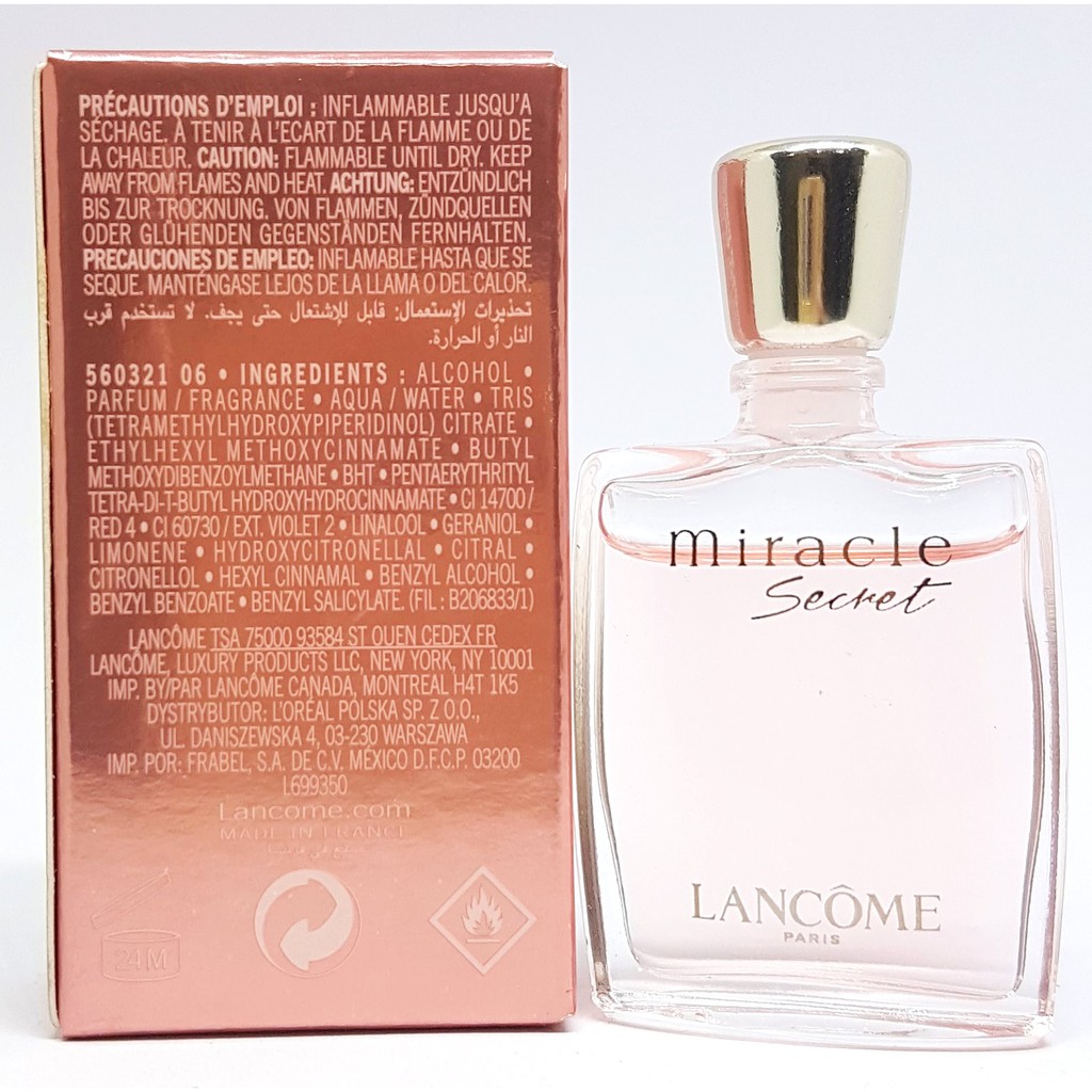 Nước hoa nữ mini MIRACLE SECRET LANCÔME PARIS L’Eau de Parfum chai 5 ml chính hãng ▸Tên sản phẩm: Nước hoa nữ mini MIRACLE SECRET LANCÔME PARIS L’Eau de Parfum