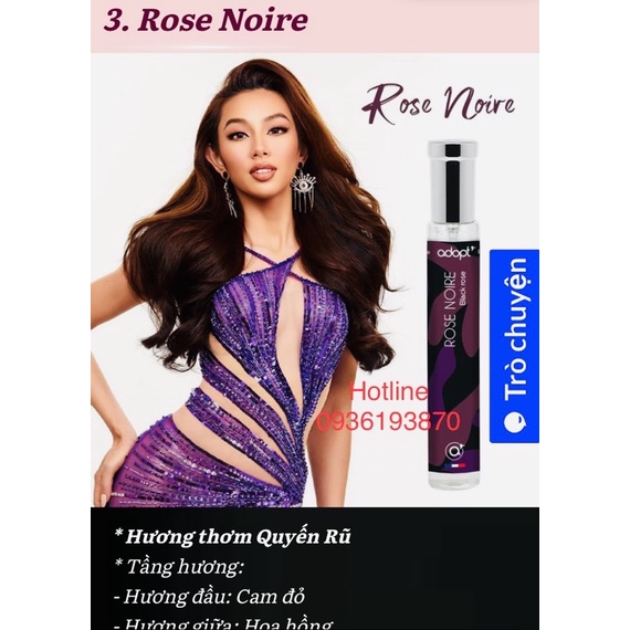 Nước hoa Pháp Adopt' Nữ Chính Hãng * Có nhiều mùi hương để lựa chọn 1. Absolu D'amour Hương thơm Quyến Rũ, Ngọt ngào * Tầng hương: - Hương đầu: Red berries - Hương giữa: Hoa hồng Damas - Hương cuối: Xạ hương * Phù hợp sử dụng khi đi chơi với bạn trai, người yêu, Crush,..... 2. Lady Glitter Hương thơm Sang Trọng, Lôi Cuốn * Tầng hương: - Hương đầu: Cà phê Latte - Hương giữa: Hoa cam, Hoa nhài - Hương cuối: Vanilla * Phù hợp sử dụng trong các buổi hẹn hò, party, sự kiện,... 3. Rose Noire Hương thơm Quyến Rũ * Tầng hương: - Hương đầu: Cam đỏ - Hương giữa: Hoa hồng - Hương cuối: Vanilla, Hoắc hương * Phù hợp sử dụng cho các buổi đi chơi, hẹn hò, overnight,... 4. Fleur De Gingembre Hương thơm Trẻ trung, năng động * Tầng hương: - Hương đầu: quýt - Hương giữa: gừng - Hương cuối: Xạ hương * Hương thơm thanh mát. Phù hợp dùng hàng ngày để đi làm, đi chơi, đi dạo phố, cafe,.... 5. Musc Blanc Hương thơm Dịu Nhẹ * Tầng hương: - Hương đầu: Hoa hồng, Hoa Ngọc Lan Tây - Hương giữa: Xạ hương - Hương cuối: Vani * Hương thơm dịu dàng, nhã nhặn. Sử dụng trong mọi hoàn cảnh đều phù hợp THÔNG TIN SẢN PHẨM - Xuất xứ: Pháp - Dung tích: 30ml - Phong cách: Trẻ trung - Độ lưu hương: 6 - 8 giờ tùy theo mùi hương và môi trường sử dụng. - Hạn sử dụng: 3 năm. - 98% nguyên liệu thiên nhiên Nước hoa Adopt' Pháp Nữ chính hãng Nước hoa Adopt là hương thơm êm nhẹ, ngọt ngào thanh mát, dịu dàng THÔNG TIN Adopt là thương hiệu Pháp, ra đời từ năm 1986 Đã có 170 cửa hàng trên toàn thế giới Adopt Việt Nam cam kết 100% hàng chính hãng Adopt' Việt Nam xin đền bù 200% giá trị nếu khách hàng phát hiện sản phẩm của chúng tôi không chính hãng Nước hoa Adopt’ được tin dùng bởi nhiều người nổi tiếng tin dùng HƯỚNG DẪN SỬ DỤNG & BẢO QUẢN Hướng dẫn sử dụng nước hoa Pháp Adopt' - Hướng vòi xịt vào vị trí cần xịt, cách cơ thể khoảng 5 - 10 cm. - Xịt ở những vùng cơ thể như cổ tay, sau gáy, giữa ngực, xương quai xanh… để hương thơm khuếch tán và giữ mùi được lâu nhất - Để nước hoa giữ mùi lâu hơn, bạn có thể xịt lên quần áo - Bảo quản nước hoa ở những nơi thoáng mát, tránh ánh nắng trực tiếp #nuochoa #nuochoanu #nuochoanam #nuochoaunisex #nuoc #hoa #nuochoathomlau #adopt #nuochoachinhhang #adopt #nuochoaadopt #nuochoaphap #adopt'