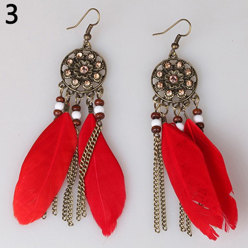 Type: Hook Earrings Theme: Beauty Gender: Women's Quantity: 1 Pair Style: Vintage, Bohemian, Ethnic Style Material: Alloy, Feather, Rhinestone Occasions: Daily Life, Beach, Party, Gift Features: Inlaid Rhinestones, Tassels, Feather, Dream Catcher, Jewelry Size: 11cm x 2cm/4.33" x 0.79" (Approx.)