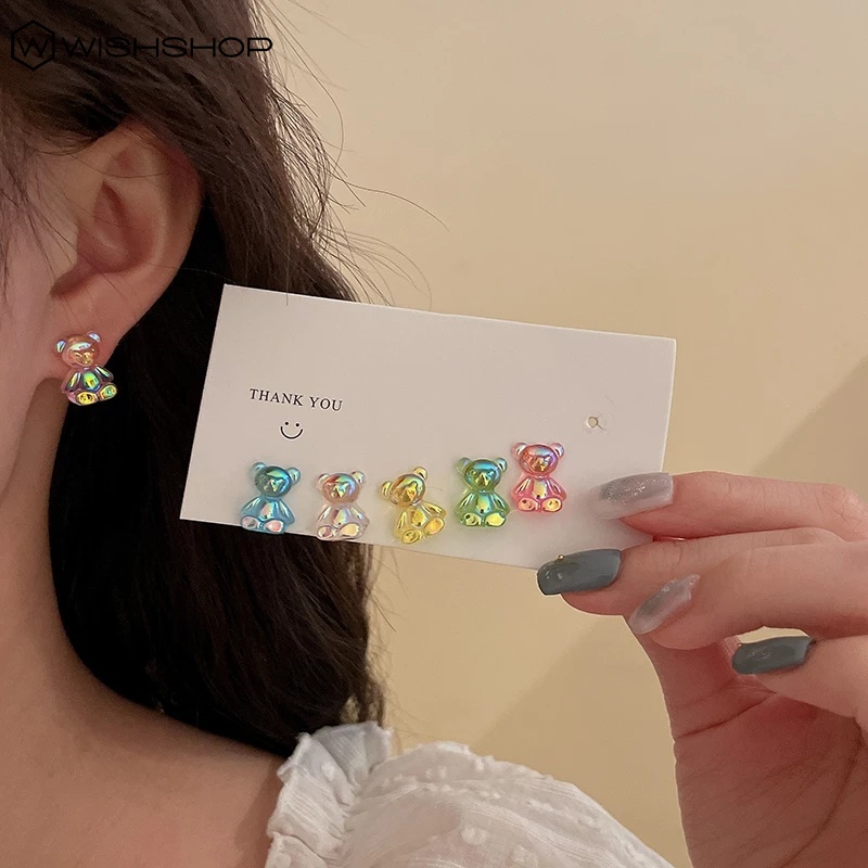 Giới thiệu Hoa tai xỏ lỗ hình gấu Teddy màu kẹo dễ thương phong cách Hàn Quốc dành cho nữ