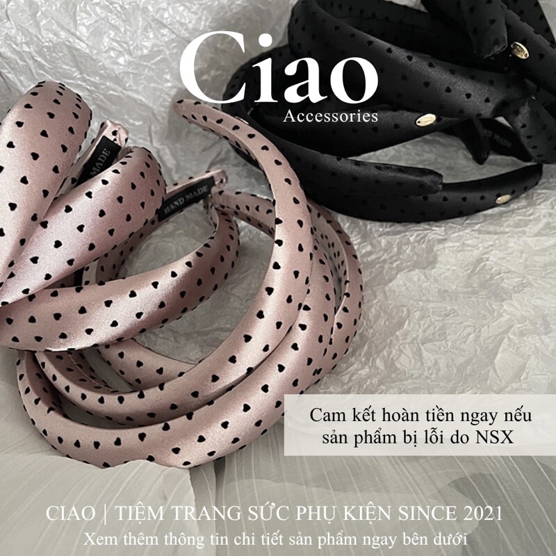 Giới thiệu [HOẢ TỐC 1H] Băng đô/ Cài tóc vải lụa mềm thiết kế hoạ tiết tim nhỏ mã 18 Ciao accessories