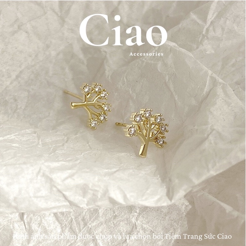 Giới thiệu [HỎA TỐC 1H] Khuyên tai/ Bông tai mạ bạc S925 thiết kế hình cây đính đá phong cách Lucky Tree Ciao