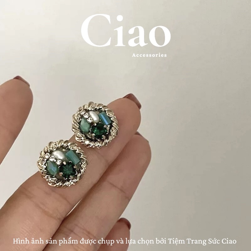 Giới thiệu [HỎA TỐC 1H] Khuyên tai/ Bông tai mạ bạc S925 thiết kế đính đá tone xanh Ladonna Ciao