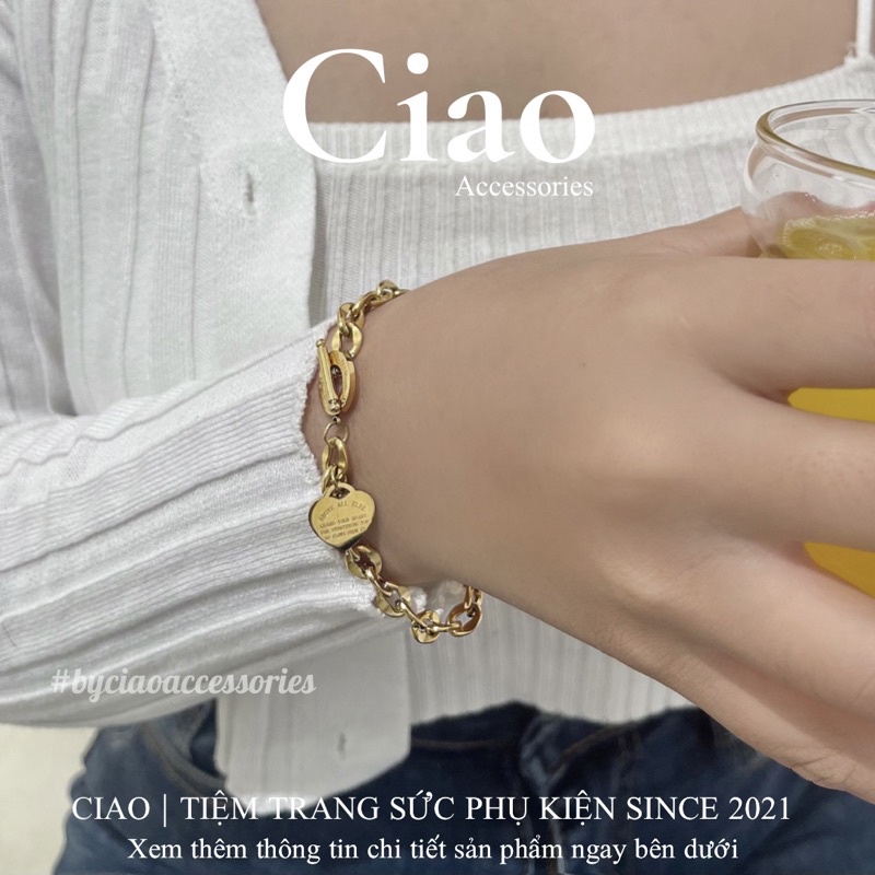 Giới thiệu [HOẢ TỐC 1H] Vòng tay/ Lắc tay titan không gỉ thiết kế bản xích charm hình tim trendy Albert Ciao