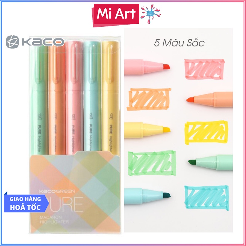 Giới thiệu [Hỏa Tốc HCM] Bộ 5 Bút Dạ Quang KACO PURE HIGHLIGHT MACARON