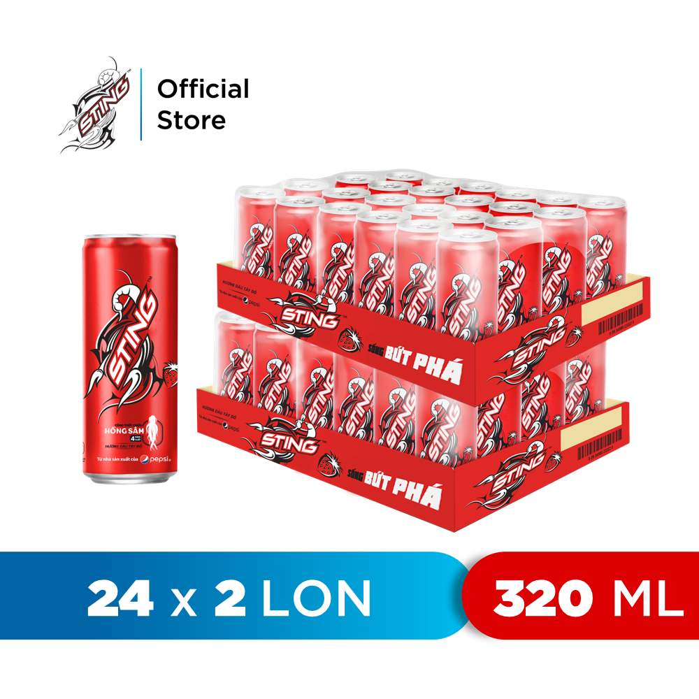 Giới thiệu [HỎA TỐC-HCM&ĐN&HN]Combo 2 Thùng 24 Lon Nước Tăng Lực Sting Dâu (320ml/lon)