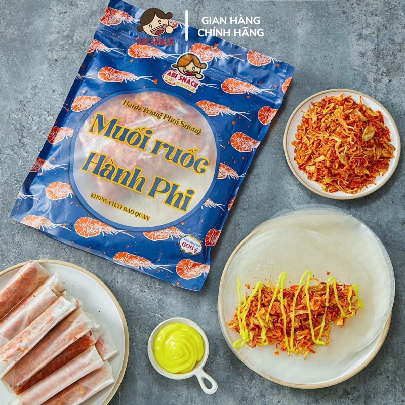 Giới thiệu [HỎA TỐC HN] Bánh tráng ABI snack phơi sương muối ruốc hành phi, đồ ăn vặt tại Hà Nội càng ăn càng cuốn ( + 4 Tuýp bơ )