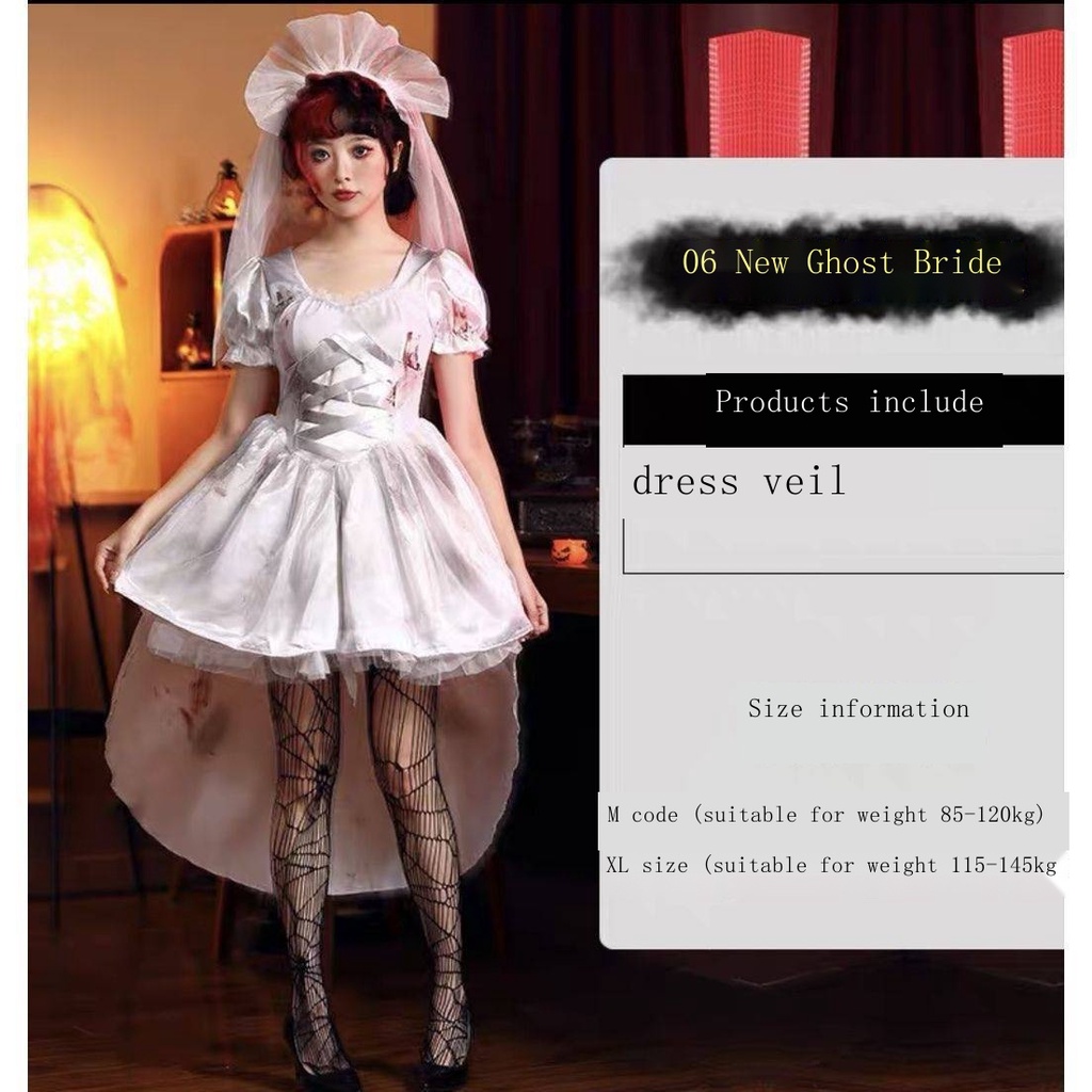 Tên hàng hóa: Trang phục Halloween cô dâu ma đáng sợ váy dài ma cà rồng zombie quần áo cos trang phục biểu diễn dành cho người lớn nữ Mã kiểu: pdd-416938905888 Độ tuổi sử dụng: Thanh niên (18-25 tuổi)