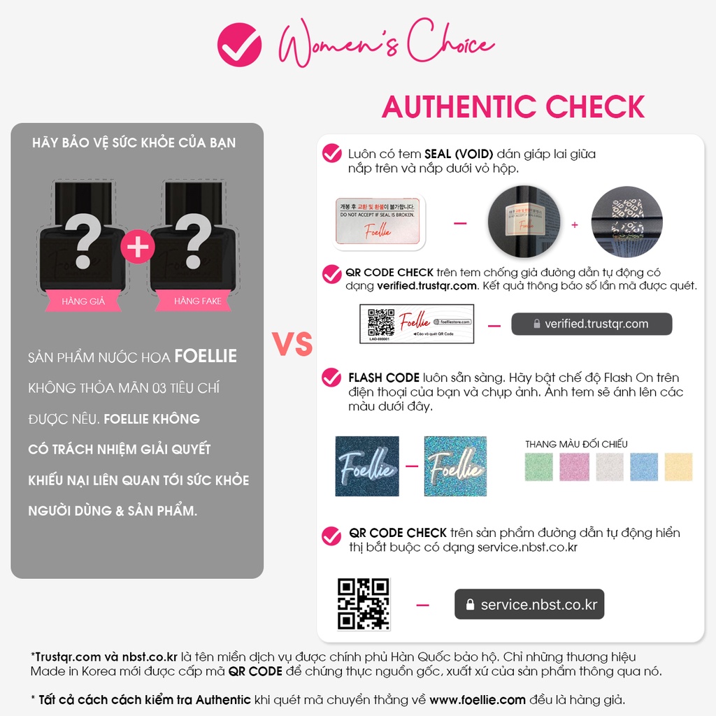 --------------------------------- THÔNG TIN SẢN PHẨM Xuất xứ: Hàn Quốc Thương hiệu: Foellie Dung tích: 5ml FOELLIE - Thương Hiệu nước hoa vùng kín được bộ Y tế Hàn Quốc cấp phép, nay đã có mặt tại Việt Nam. ---------------------------------- THÀNH PHẦN + Dầu hoa Anh Thảo + Dầu hạt Argan + Dầu hạt Macca + Dầu hạt Jojoba + Dầu hạt Hoa trà + Dầu hạt Hướng dương + Và thành phần hương tự nhiên làm nên mùi đặc trưng của từng loại sản phẩm. ---------------------------------- CÔNG DỤNG + Sản phẩm nước hoa vùng kín được bộ Y tế Hàn Quốc cấp phép. + Loại bỏ mùi, vừa mang lại hương thơm dịu nhẹ, quyến rũ cho cô bé. + Chứa phytoncide có tác dụng giảm stress. + Chứa thành phần tự nhiên và an toàn với 6 chiết xuất thảo dược và 6 loại dầu thực vật. + Giúp giữ cho vùng kin sạch sẽ và cân bằng độ pH, loại bỏ mùi hôi và mang lại cảm giác sạch sẽ, thanh khiết. Nước hoa vùng kín Foellie Eau De Fleur 5ml bí quyết giúp "Cô bé " không chỉ xinh xắn mà còn trở nên ngọt ngào quyến rũ, cho bạn những phút giây vô cùng lãng mạn. ---------------------------------- HƯỚNG DẪN KIỂM TRA Ngoài cách kiểm tra thông thường như QR CODE, Hiden Tag, tem Flash, ... Hãy liên hệ trực tiếp với chúng tôi để yêu cầu thêm thông tin kiếm tra hàng chính hãng (Authentic). ---------------------------------- HƯỚNG DẪN SỬ DỤNG Cách 1: Nhỏ 1 - 2 giọt vào quần lót mỗi ngày, (Dùng được trong ngày kinh nguyệt). Dung dịch sẽ loại bỏ mùi khó chịu và tỏa ra hương dễ chịu một cách nhanh chóng. Giúp cân bằng độ PH mang lại cảm giác thoải mái, cuốn hút cho cả bạn và người ấy. Cách 2: Tắm bồn: Nhỏ 3~4 giọt vào nước. Mùi hương dễ chịu của nước hoa sẽ lan tỏa giúp bạn thư thái. Cách 3: Hẹn hò: Nhỏ 1~2 giọt lên quần lót, cổ tay, cổ, gáy. Mùi hương của Secret Love sẽ giúp bạn có buổi hẹn hò lý tưởng và lãng mạn. ---------------------------------- LƯU Ý & BẢO QUẢN - Bảo quản nơi khô ráo thoáng mát - Tránh ánh nắng trực tiếp - Để xa tầm tay trẻ em - Sản phẩm này không phải là thuốc và không có tác dụng thay thế thuốc chữa bệnh. ---------------------------------- TAG #nuochoavungkin #Foellie #Foellie #nuochoaFoellie #Nuochoabim #Foelliechinhhang #NuochoaFollie #Follie