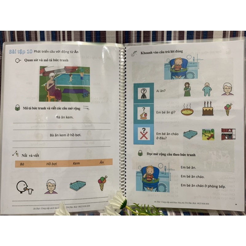 Học Liệu làm để hỗ trợ thầy cô và ba mẹ có các dạng bài thực hành và có thêm hình ảnh để dạy bé Học liệu cung cấp một số động từ cơ bản Học nối/ nhận biết tính từ trái nghĩa Nhóm từng nhóm theo chủ đề, nói tên các vật trong nhóm/ Tìm hình nào không thuộc nhóm đó… Phần trả lời câu hỏi theo gợi ý… chia nhỏ câu hỏi… mở rộng câu hỏi…. dạy nói theo mẫu câu từ ngắn đến dài Học liệu 57trang được ép plastic và đóng lò xo chắc chắn, không lo bé sẽ làm rách ạ❤️❤️