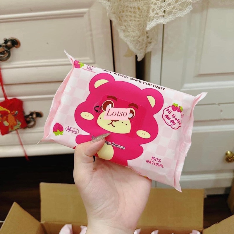 KHĂN GIẤY ƯỚT GẤU DÂU LOSTO mớiiiiWa xinkkkk huhu huh - 1 hộp 10 gói như ảnh - Shop có tách bán lẻ 2 gói & 5 gói để KH dễ lựa chọn ạ (chọn kĩ phân loại khách nha)