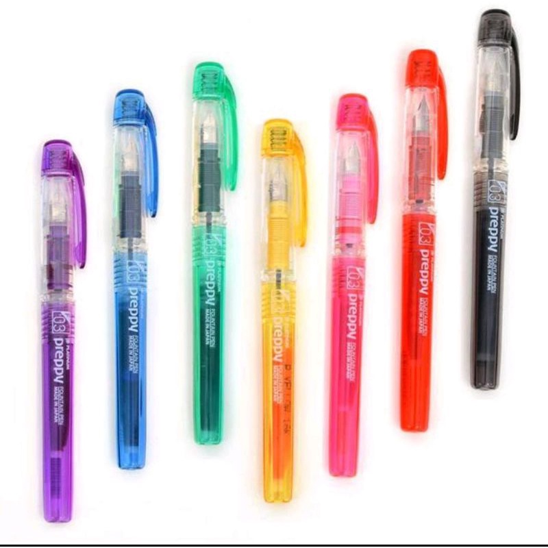 Thông tin chi tiết sản phẩm: Bút Máy Nhật Bản Platinum Preppy F03 Cho Học Sinh Cấp 1 Mỗi bút bán ra có sẵn 1 ống mực Nhật Bản chính hãng đi kèm cùng màu với màu thân bút. Hãng sản xuất: Platinum Xuất xứ: Nhật Bản Dài 138mm, đường kính thân bút 12.5mm Ngòi bút: nét 03 ( là nét viết vừa dành cho học sinh tiểu học) Trọng lượng: 14g Màu sắc: Xanh, Tím, Hồng, Đen