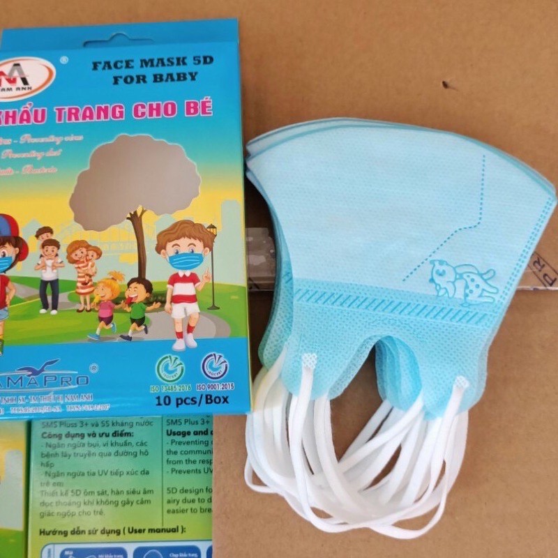 Sản phẩm của Công Ty TNHH SX - TM Thiết Bị Nam Anh Sản phẩm đã được kiểm nghiệm, có giấy chứng nhận về chất lượng. 1 hộp gồm 10 cái Màu sắc: xanh, Khẩu trang làm bằng vải không dệt, gồm 3 lớp với 2 lớp vải mềm mại và lớp giấy kháng khuẩn ở giữa bảo vệ an toàn cho bé Dùng cho bé từ 6 tháng đến 5 tuổi #khautrangyte #khautrangchobe #khautrangtreem