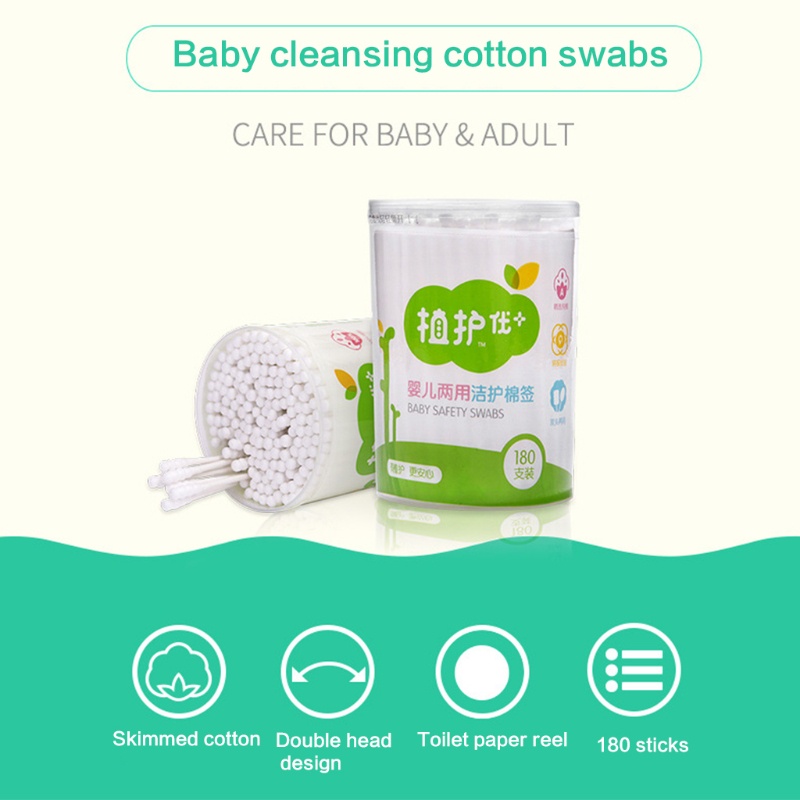 Giới thiệu Hộp 180 Tăm Bông Cotton Hai Đầu Có Tay Cầm Giấy Cho Người Lớn Và Trẻ Em