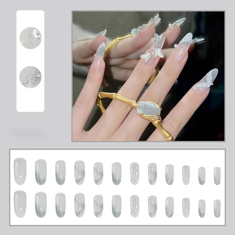 24 cái / hộp Mẹo làm móng giả + bấm keo Hạnh nhân Móng tay giả Có thể đeo Móng tay giả Mẹo làm móng tay Bao phủ đầy đủ Dụng cụ làm móng Dụng cụ làm móng có thể tháo rời Máy ép nhân tạo trên móng tay Thời trang nữ