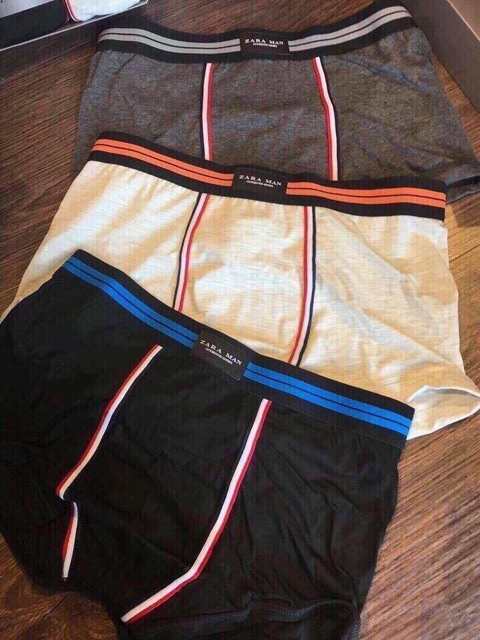 Quần lót ZARA với thiết kế tỉ mỉ, đẹp, thời trang từ dáng quần tới vỏ hộp đựng . Quần ZARA MAN đích thị chính là một sự lựa chọn rất hoàn hảo đối với phái nam giới. Quần lót ZARA MAN được thiết kế với 2 kiểu dáng Đùi và Tam giác. Chất cotton cao cấp ,mịn,co giãn, mặc ôm nhưng cực kì thoải mái,thoáng, thấm hút mồ hôi. Gồm 4 size cho mọi người dễ dàng lựa chọn với từng mức cân khác nhau Màu sắc y hình. Hộp 3 quần. Size Âu nhảy 1 size so với size thường. S ( 45 - 55kg), M ( 55 - 65kg), L ( 65 - 75kg), XL ( 75 - 85kg) Giá : 200k / hộp 3 quần Đùi. Giá : 190k / hộp 3 quần Tam Giác. Xuất xứ: hàng Việt Nam xuất khẩu