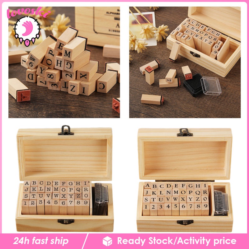 Bộ 36 Con Dấu Gỗ In Chữ Số / Chữ Cái Đa Năng Hỗ Trợ Dạy Học DIY