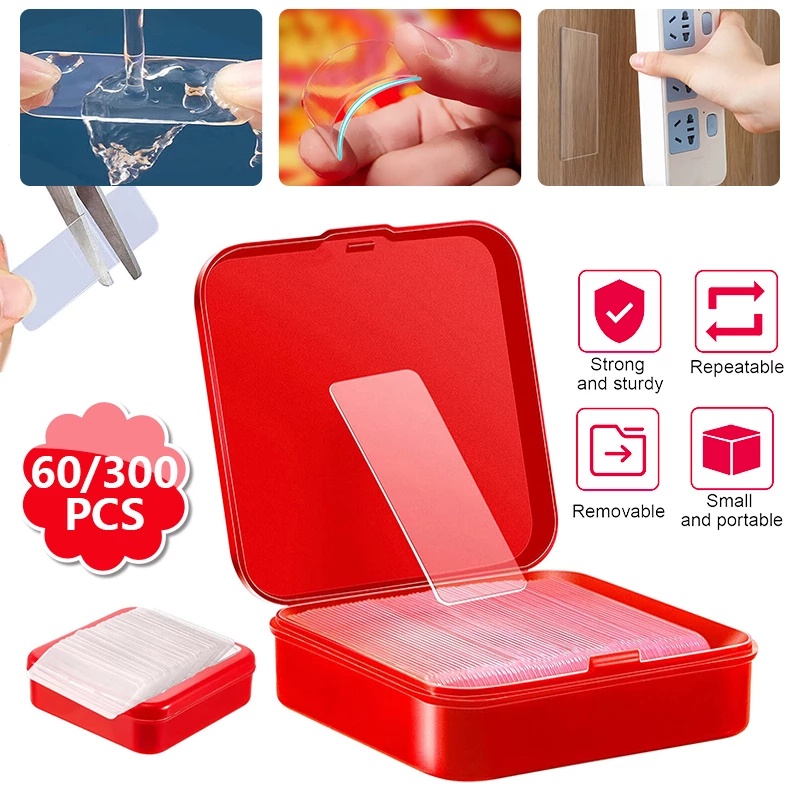 Giới thiệu Hộp 60 Băng Keo Dán Hai Mặt Bằng PVC Trong Suốt Chống Nước Không Để Lại Dấu Và Giặt Rửa Đa Năng