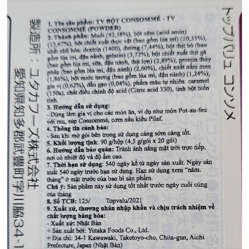 Giới thiệu [Hộp 90g (4.5g x 20 gói)] BỘT NÊM CONSOMMÉ [Japan] TOPVALU Consomme Powder