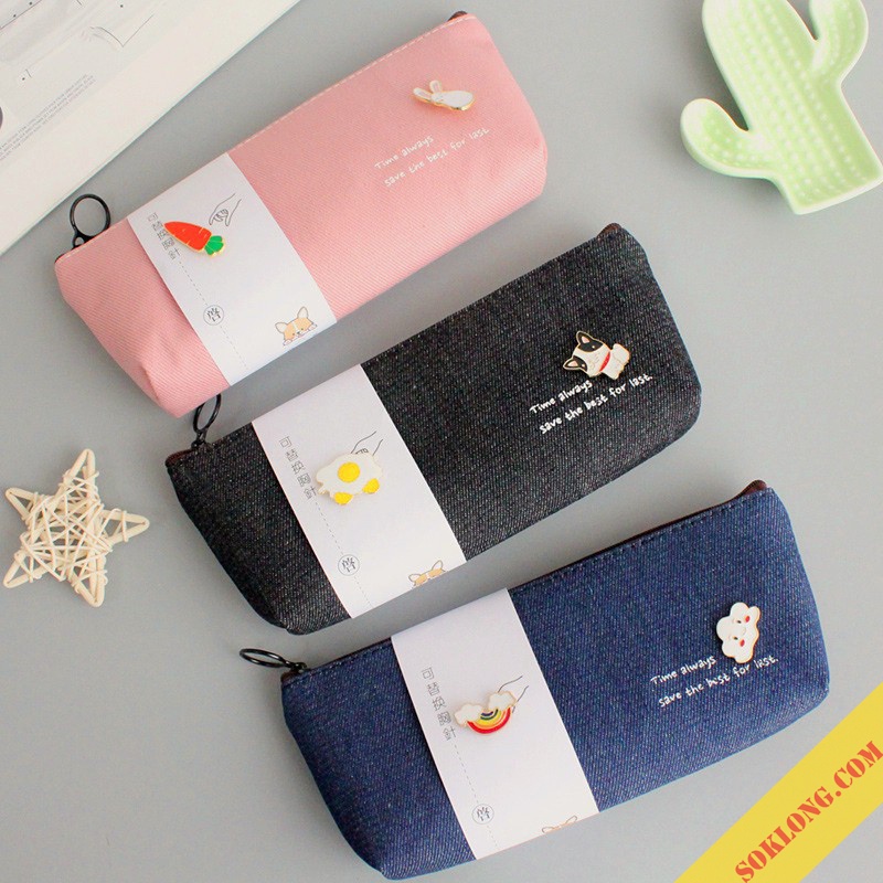 Giới thiệu Hộp bút bóp viết vải Canvas đính chi tiết kim loại dễ thương