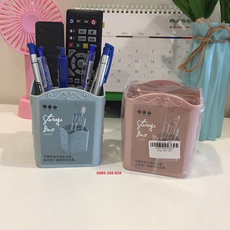 Hộp cắm bút để bàn: - Chất liệu: Nhựa. - Kích thước: 9x9x10cm (DxRXC) - Màu sắc: Hồng nhạt, xanh - Hộp có thiết kế gọn nhẹ, đơn giản nhưng không kém phần thanh lịch nhờ vào màu sắc trang nhã. Ngoài việc cắm bút thì có thể cắm dụng cụ trang điểm hoặc cắm điều khiển ti vi....
