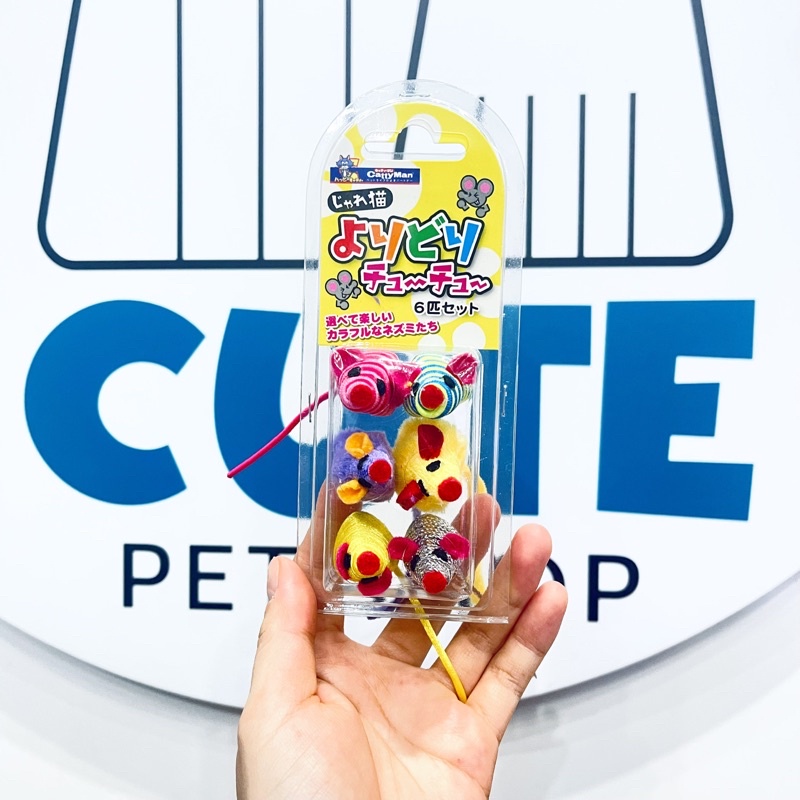 Set 6 chuột nhiều chất liệu, màu sắc. Giúp giao tăng giao tiếp với mèo cưng. * Nội dung Chi Tiết Thông số sản phẩm: Kích thước sản phẩm (mm ) : 70 x 175 x 50 Kích thước đóng gói (mm): Trọng lượng sản phẩm (g) : JAN: 4976555844368 Xuất xứ: Việt Nam