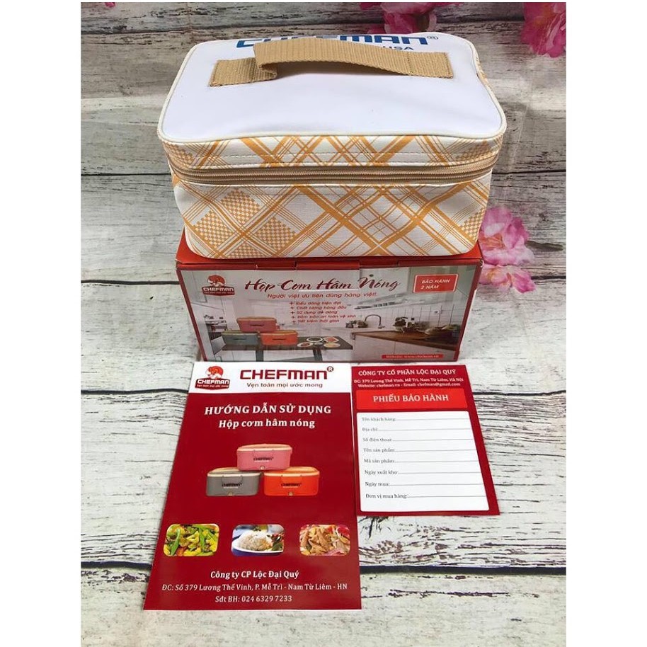 Hộp Cơm Hâm Nóng Chefman CM112I có thiết kế thông minh, là dòng hộp cơm được sản xuất với ruột Inox an toàn, dày dặn, đạt tiêu chuẩn siêu bền, đảm bảo an toàn và có thể tháo rời dễ vệ sinh. Sản phẩm có lớp vỏ bên ngoài được cấu tạo bằng nhựa PP cao cấp, màu sắc đẹp mắt, nhã nhặn. Và nắp đậy trang bị chốt cài 4 phía, gioăng chống tràn giúp thức ăn không bị tràn ra ngoài Hộp cơm có cấu tạo bên trong gồm gồm ngăn đựng cơm và 2 hộp đựng thức ăn. Thiết kế thông minh với chỗ để thìa, đũa, dĩa ở trên nắp tiện lợi. Bộ sản phẩm hộp cơm chefman bao gồm: 1 hộp cơm, 1 ruột Inox, 2 hộp đựng thức ăn, 1 thìa nhựa, 1 đôi đũa, 1 dĩa, 1 dây điện.phiếu BH, kèm theo sách hướng dẫn sử dụng và đặc biệt kèm theo túi đựng hộp cơm bằng Simili cao cấp, sang trọng