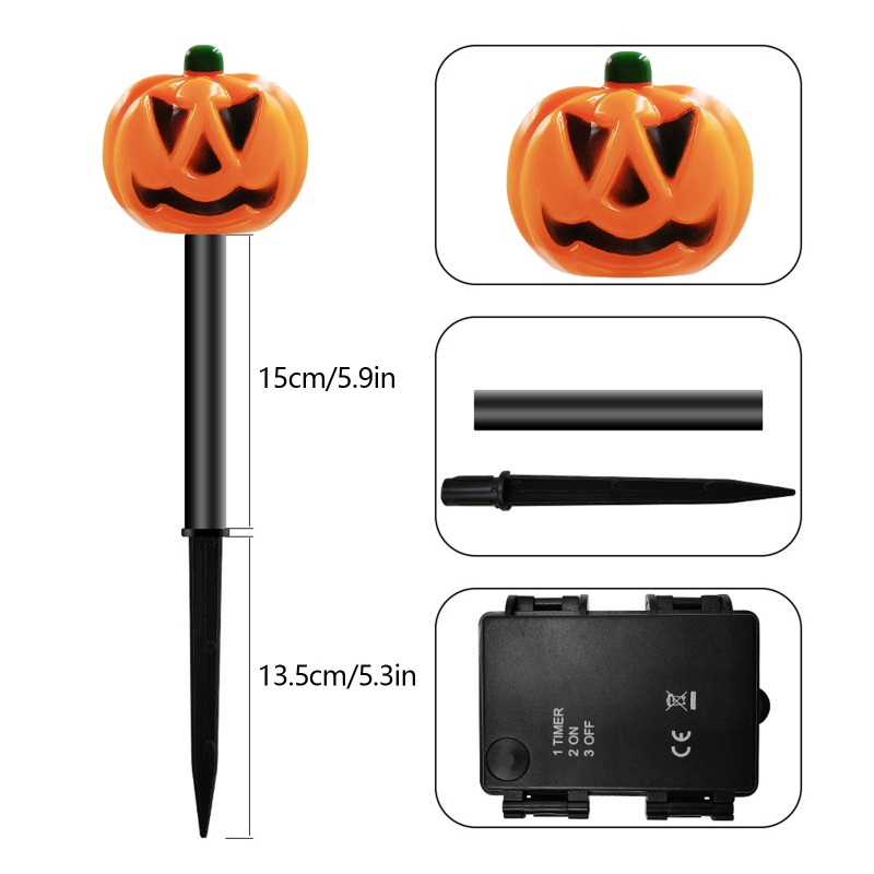 Đèn cọc bí ngô Hộp đèn Đèn lồng khí quyển cho bữa tiệc Halloween Các tính năng: Bí ngô nụ cười: Dây jack-o-lantern trang trí Halloween này được thiết kế trong 3D để thực sự trang điểm cho sân, đường trước hoặc cửa trước của bạn để tạo hiệu ứng bữa tiệc. Ánh sáng trắng ấm: Đèn dây jack-o-lantern trang trí Halloween luôn ấm áp. Chỉ cần nhấn nút, đèn sẽ lắc lư từ đèn jack-o-lantern, có độ sáng cao và ánh sáng ổn định mà không bị chói. Khoảng cách thích hợp: Đèn trang trí sân vườn có 5 đèn cắm đất và công tắc hộp. Khoảng cách giữa đèn là 52cm, và khoảng cách xa nhất là 208cm. Khu vườn trông thật đẹp và có bầu không khí Halloween; và phích cắm trên mặt đất là 13,5cm, chắc chắn hơn khi lắp vào mặt đất và không dễ bị đẩy xuống. Được hỗ trợ và điều khiển từ xa: Dây jack-o-lantern của chúng tôi được cung cấp năng lượng bởi 3 pin AA (sản phẩm không đi kèm với pin), và hộp điều khiển trực tiếp công tắc nguồn. Chống thấm nước và độ bền: Thiết kế chống thấm nước IP 42 được chứng nhận của chúng tôi, và đối với vỏ được làm bằng chất liệu PC cao cấp, phù hợp hơn để trang trí hiệu ứng ánh sáng trong nhà và ngoài trời.