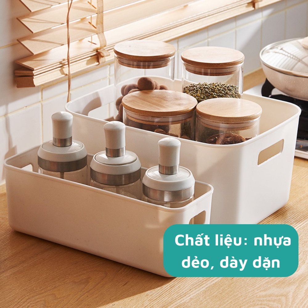 - Hộp nhựa để đồ có nắp được làm từ chất liệu nhựa cao cấp, dày dặn, khả năng chịu lực tốt, tuyệt đối an toàn, không mùi độc hại - Hộp đựng đồ có nắp được thiết kế thông minh, phần tay cầm chắc chắn, nắp đậy kín đáo, có thể sử dụng cho đa số các không gian khác nhau từ nhà bếp, phòng khách, tủ quần áo, nhà tắm - Sản phẩm thiết kế theo phong cách Nhật, nhỏ gọn tinh tế, có tay cầm - Sản phẩm được làm tỉ mỉ, các góc cạnh đều được mài nhẵn, không gây xây xước trong quá trình sử dụng