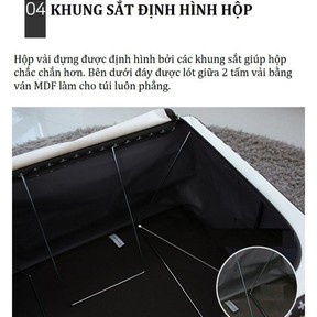 THÔNG TIN SẢN PHẨM TÚI ĐỰNG CHĂN MÀN KHUNG SẮT CAO CẤP: – Tên sản phẩm: Túi đựng chăn màn khung sắt - Thùng vải đựng quần áo 80l tiện dụng – Xuất xứ: Việt Nam – Kích thước: 50 x 40 x 35cm. – Màu sắc: Đỏ, Ghi, Đen, Kem – Chất liệu: Vải polyester, khung thép – Trọng lượng: 1000GR
