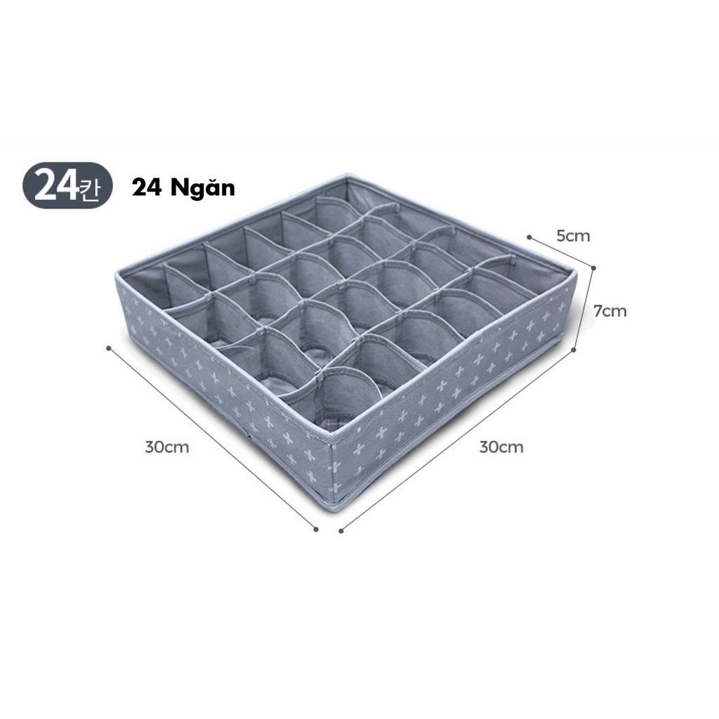 Giới thiệu Hộp đựng đồ lót gấp gọn 24 Ngăn Ollyhome, Hộp vải xép gọn đồ lót, tất vớ vải không dệt màu xám hoa văn chữ thập