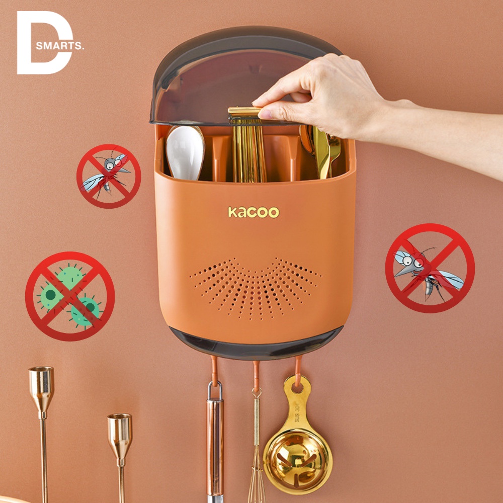 Hộp đựng đũa muỗng có nắp đậy gắn tường, ống đựng đũa treo tường chống bụi tích hợp móc treo