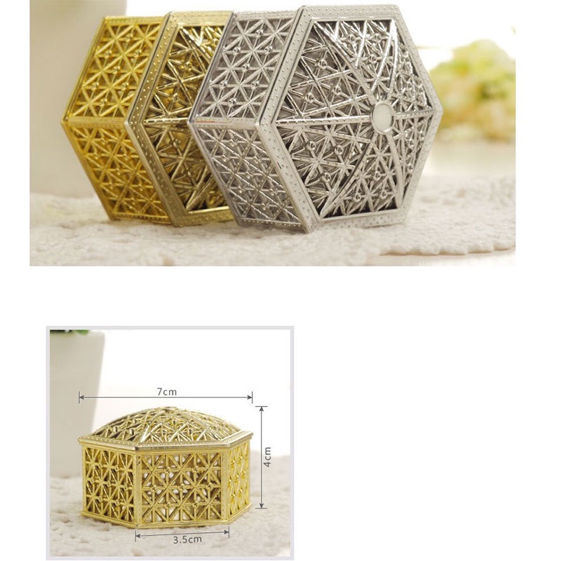 Hộp ưu đãi tuyệt đẹp cho tiệc cưới. Thích hợp để đóng gói quà tặng nhỏ, đồ thủ công, sô cô la, kẹo, v.v. Có thể làm cho một bất ngờ đáng nhớ cho khách của bạn. Được làm bằng nhựa cao cấp và thiết kế với thiết kế hộp kho báu thời trang. Chất liệu: Nhựa. Màu tùy chọn: Vàng, Bạc (Như Hình ảnh Hiển thị) Kích thước: như hình ảnh Hình dạng: Hình vuông / Hình lục giác Gói hàng bao gồm: 1 x Hộp quà kẹo Lưu ý: điều này được làm bằng nhựa Do sự khác biệt về cài đặt ánh sáng và màn hình, màu sắc của sản phẩm có thể hơi khác so với hình ảnh. Vui lòng cho phép sự khác biệt kích thước nhỏ do đo lường thủ công khác nhau.