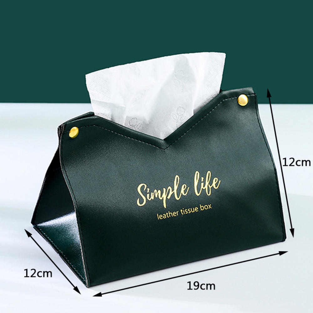 Tính năng ' - Được làm bằng chất liệu da mềm cao cấp không thấm nước và không bị bẩn. in chữ vàng . - Thiết kế mở hình chữ V , giúp kéo khăn giấy dễ dàng hơn mà không bị kẹt ở giữa . - Thiết kế nút ẩn giúp bạn dễ dàng thay khăn giấy . - Kích thước phù hợp nên phù hợp với hầu hết các loại giấy lụa gia đình . - Không chỉ là hộp đựng khăn giấy mà còn là hộp đựng đồ trang sức , mỹ phẩm .