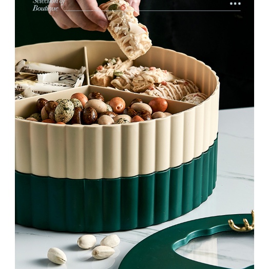 Nhà Cửa & Đời Sống > Đồ dùng nhà bếp và hộp đựng thực phẩm > Hộp, túi đựng thực phẩm > Hộp đựng mứt 2 tầng sang trọng , khay mứt hình con hưu vàng phong cách bắc âu -KHAY MỨT HƯU XANH