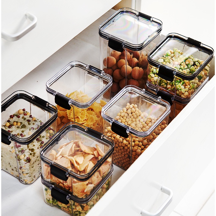 Nhà Cửa & Đời Sống > Đồ dùng nhà bếp và hộp đựng thực phẩm > Hộp, túi đựng thực phẩm > Hộp Đựng Thực Phẩm Khô/Thực Phẩm Khô/Thức Ăn Khô/Ngũ Cốc Trong Suốt Bền Bỉ Cao Cấp Có Nắp Đậy Dễ Khóa