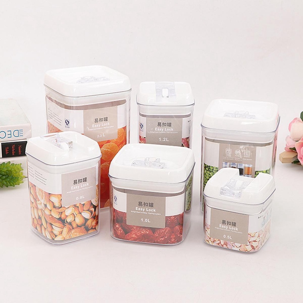 2.3ll 'W'H) ' 12,5cmx12,5cmx22,5cm Hộp kín khí Giữ cho Hũ tươi Lon kín chân không có nắp Hộp bảo quản thực phẩm Hộp đựng thực phẩm Nhà bếp Hộp đựng gạo Nhiều hạt Acrylic trong suốt Dễ dàng khóa Hình vuông Chống rò rỉ Đa dung tích 0.5L '2.3L