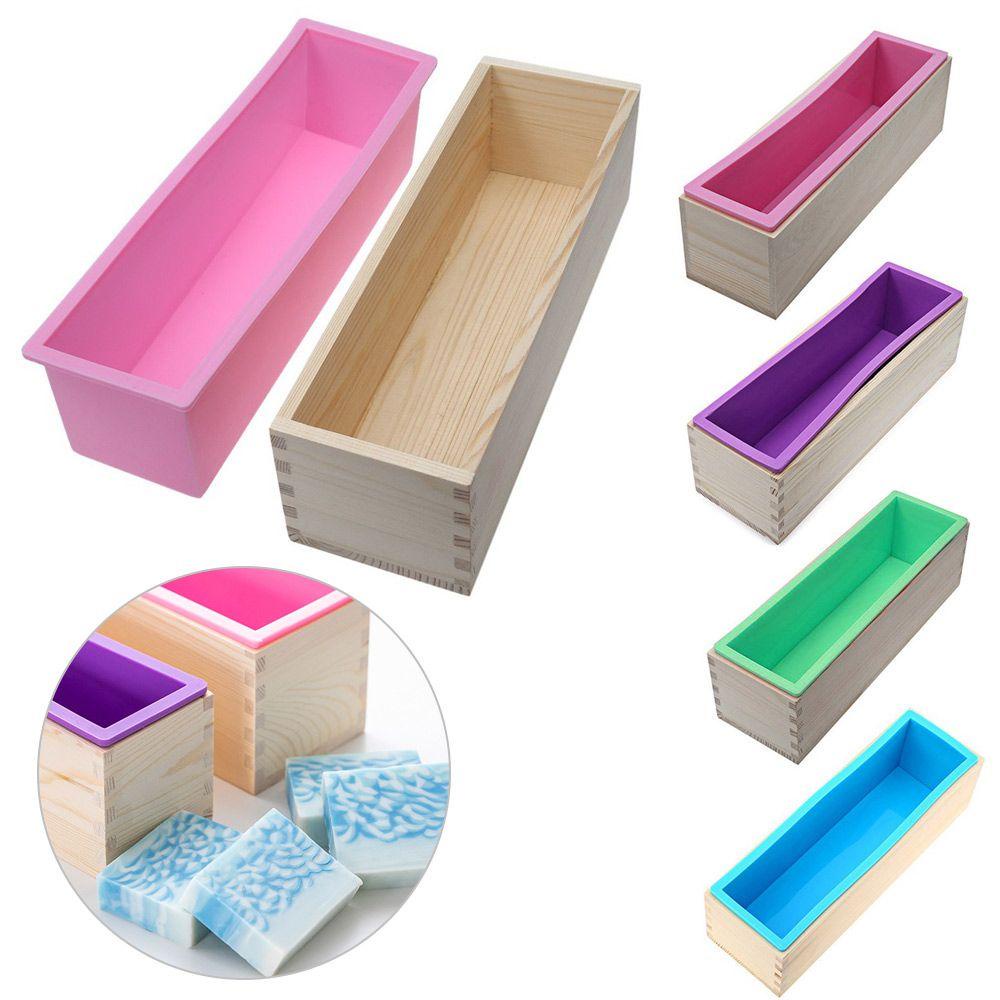 1 x Bộ khuôn xà phòng Silicone có nắp Dụng cụ làm xà phòng Khuôn Silicone Khuôn xà phòng Khuôn bánh mì nướng với hộp gỗ và nắp đậy Bộ dụng cụ xà phòng làm bằng tay Bánh xà phòng làm bánh Loaf Dụng cụ làm bánh Hình chữ nhật 3 trong 1