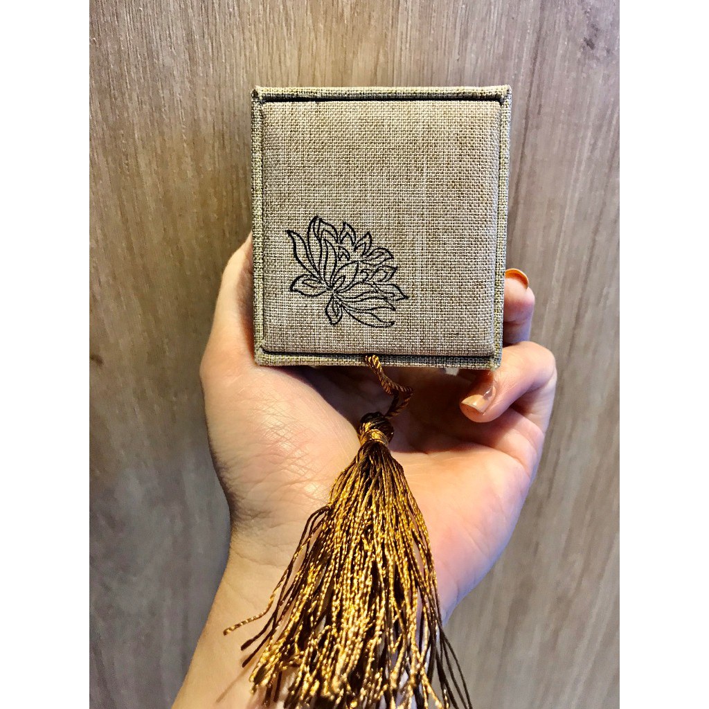 * THÔNG TIN SẢN PHẨM: - Kích thước: 6.5x6x3.5cm (dài x rộng x cao) - Chất liệu: * Bên ngoài: vải thô hoa sen sang trọng * Bên trong: lớp lót nhung màu đen mềm mại