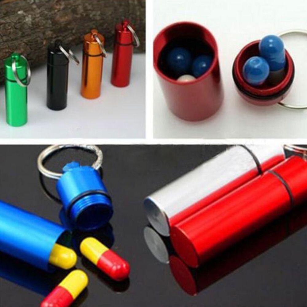 Chất liệu : hợp kim nhôm Móc chìa khóa Chai thuốc Hộp đựng đồ Hộp đựng đồ Hộp đựng đồ sáng tạo Nhôm Màu sắc ngẫu nhiên Không thấm nước Nóng mới Chất lượng cao Tiện lợi Ngoài trời đầy màu sắc