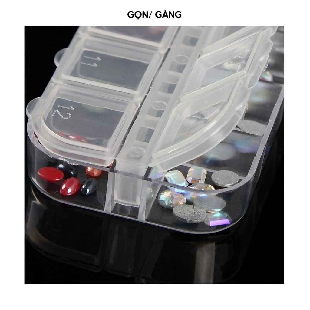 Giới thiệu Hộp nhựa nhiều ngăn 12 ngăn trong suốt đựng trang sức đồ y tế phụ kiện nail Gọn Gàng