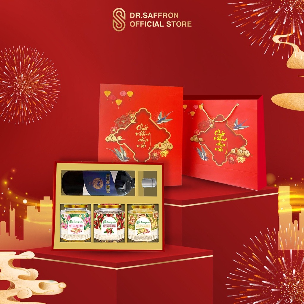 1. SET quà tặng gồm: - 1 Hũ mứt sen mix saffron 90gr - 1 Hũ mứt gừng mix saffron - 40gr - 1 chai vang - 1 Táo đỏ sấy cao cấp Ngày sản xuất in trên bao bì sản phẩm Hạn sử dụng 12 tháng 2. HƯỚNG DẪN BẢO QUẢN - Bảo quản nơi khô ráo, thoáng mát - Tránh ánh nắng trực tiếp để đảm bảo được chất lượng của sản phẩm. 3. Tại sao nên mua set quà Tết này? Hộp quà tết được thiết kế độc quyền đẹp mắt, tuy đơn giản nhưng lại rất thu hút. Rất phù hợp là quà biếu tặng người thân, bạn bè, đồng nghiệp. Dùng để tiếp khách trong những ngày Tết cũng rất là hợp lý. Sản phẩm an toàn chất lượng, có kiểm định của cơ quan chức năng Phụ kiện đi kèm mang dấu ấn, đồng bộ Nhân viên tư vấn trực 24/24 giải đáp mọi thắc mắc nhu cầu của khách hàng. Hỗ trợ in logo, thiệp sản phẩm theo yêu cầu của doanh nghiệp. Giá cả hợp lý phù hợp với nhu cầu của khách hàng. Công ty có giấy tờ đầy đủ, hỗ trợ xuất hóa đơn cho doanh nghiệp.