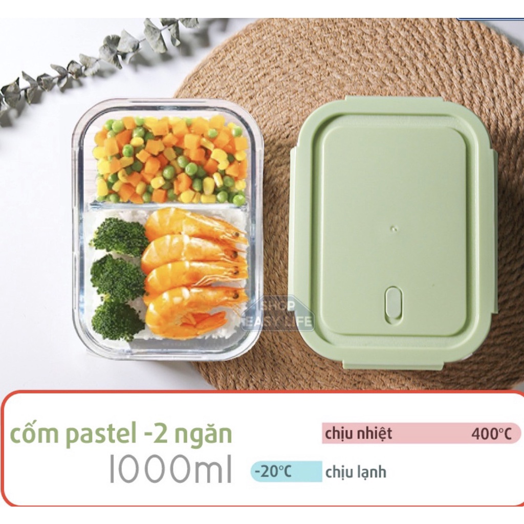 Thông tin sản phẩm: - Chất liệu: được làm từ thủy tinh Borosilicate chịu nhiệt cao cấp, nắp được làm từ nhựa PP - Kích thước: đa dạng kích thước - Màu sắc: có nhiều màu sắc để lựa chọn - Nhiệt độ cao nhất có thể chịu được: 400 độ - Nhiệt độ thấp nhất có thể chịu được: -20 độ - Thể tích: 1000ml - Phân ngăn: 2 ngăn - Hình dáng: Hình chữ nhật