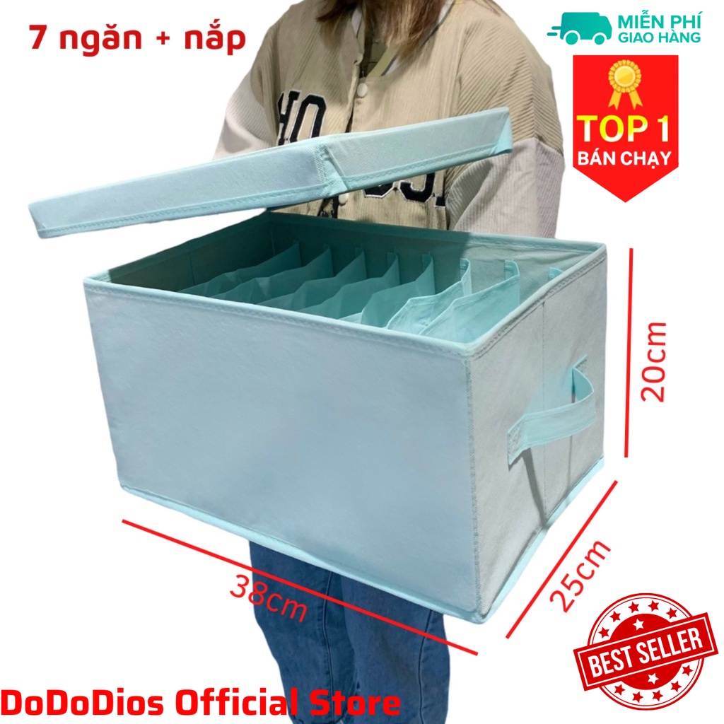 Hộp vải đựng đồ chia ngăn xếp gọn - Bộ 1 hộp đựng đồ chia ngăn tiện ích, chất liệu cao cấp, phong cách Nhật sang trọng 1. MÔ TẢ: - Thương hiệu: dododios - Xuất xứ thương hiệu: Việt Nam Phân loại: - Màu sắc: Hoa Trắng, Hoa Đen - Kích thước: 38x25x20cm - Chất liệu: Vải không dệt cao cấp dày dặn cứng cáp, khung làm bằng giấy nén tiêu chuẩn Nhật cứng cáp, dày dặn và chắc chắn. - Số lượng: 1 set 1 hộp 2. ĐẶC TÍNH CỦA SẢN PHẨM: - Hộp có thể gấp gọn lại nhẹ nhàng, tiết kiệm diện tích. - Mỗi hộp được chia 7 ngăn xếp quần bò, áo len một cách dễ dàng mà vẫn giữ được phom dáng. - Giúp dễ dàng tìm hay lấy đồ một cách nhanh chóng, tiết kiệm thời gian. - Giúp ngăn tủ quần áo gọn gàng, ngăn nắp. - Sắp xếp một cách khoa học, tiện ích theo phong cách người Nhật