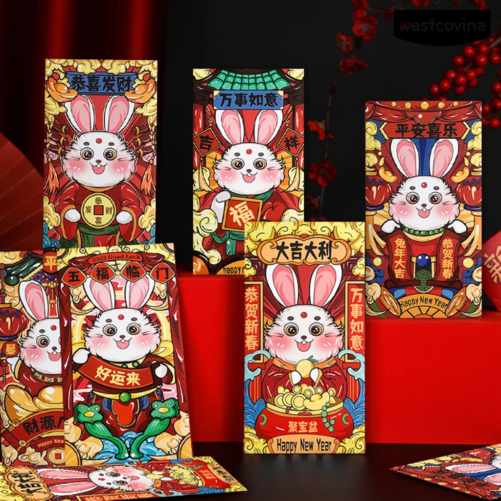 Giới thiệu [Hot]☃Bộ 6 Bao Lì Xì Đỏ In Hoạt Hình Thỏ Kiểu Trung Hoa Năm 2023 Dễ Thương