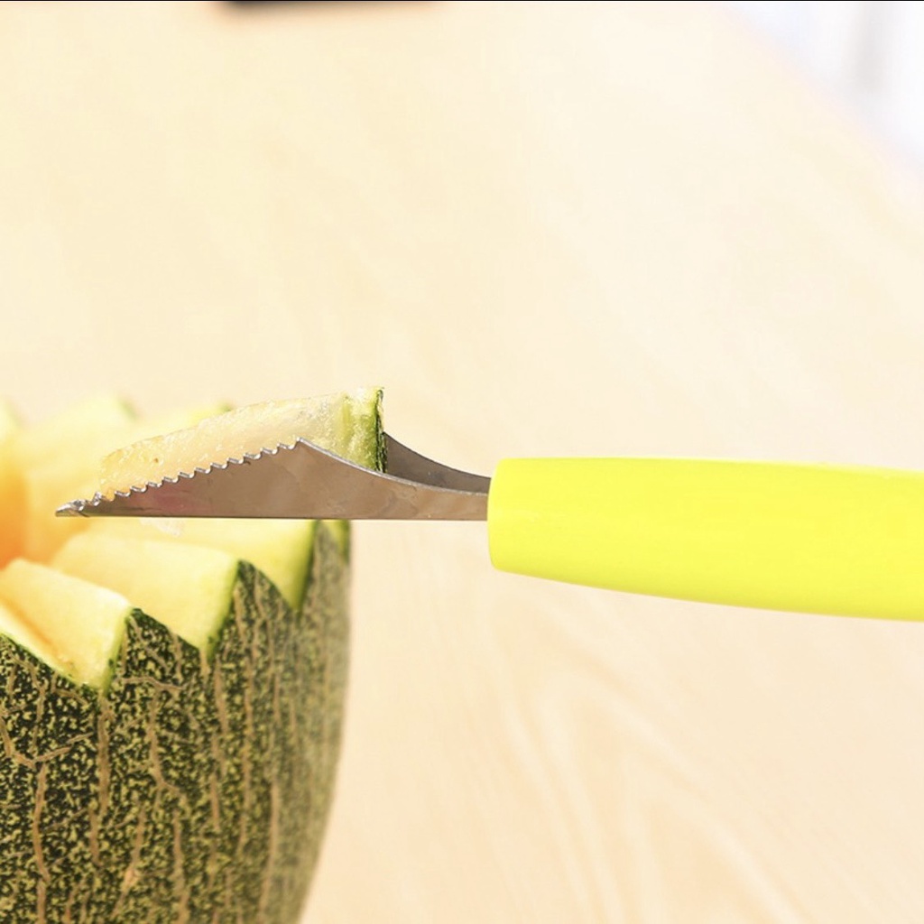 Dụng cụ cắt tỉa trái cây được thiết kế gồm 2 đầu, một đầu dùng để múc, một đầu để tỉa rau củ, hoa quả, cho bạn gái thể hiện sự khéo léo và cắt tỉa nhiều dĩa hoa quả bắt mắt cho cả gia đình. Chất liệu kim loại cao cấp, sáng bóng, bền đẹp sắc bén với giá thành phải chăng thích hợp cho mọi gia đình.