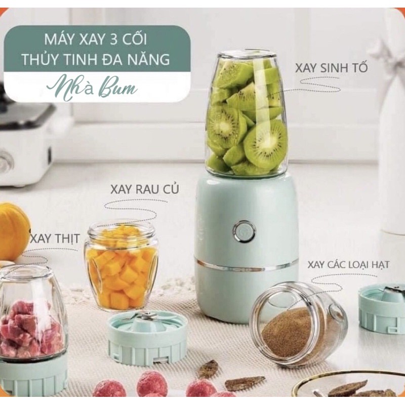 Máy xay 3 cối công suất lớn, cối thủy tinh, xay thịt, hạt, cháo siêu nhuyễn - Hàng nội địa Trung