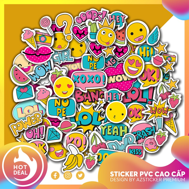🏷 THÔNG TIN SẢN PHẨM SET STICKER ▪️ Chất liệu: decal vinyl phủ màng bóng chống nước, co giãn 4 chiều dán được mọi bề mặt ▪️ Phù hợp dán điện thoại, laptop, nón bảo hiểm, vali, sổ sách, đồ dùng, thiết bị công nghệ ▪️ Công nghệ in Eco-Solvent sắc nét, có phủ bề mặt laminate chống nước, chống bay màu ▪️ Set A4 có số lượng hình từ 15~100 hình dán sticker tùy theo chủ đề.