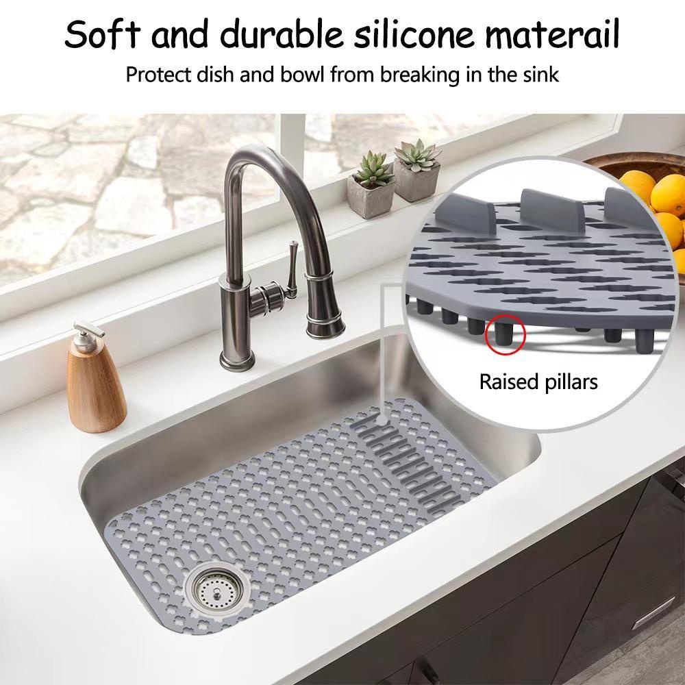 Đây là một miếng thảm bồn rửa bằng silicon đầy đủ không có bất kỳ lỗ nào ban đầu .